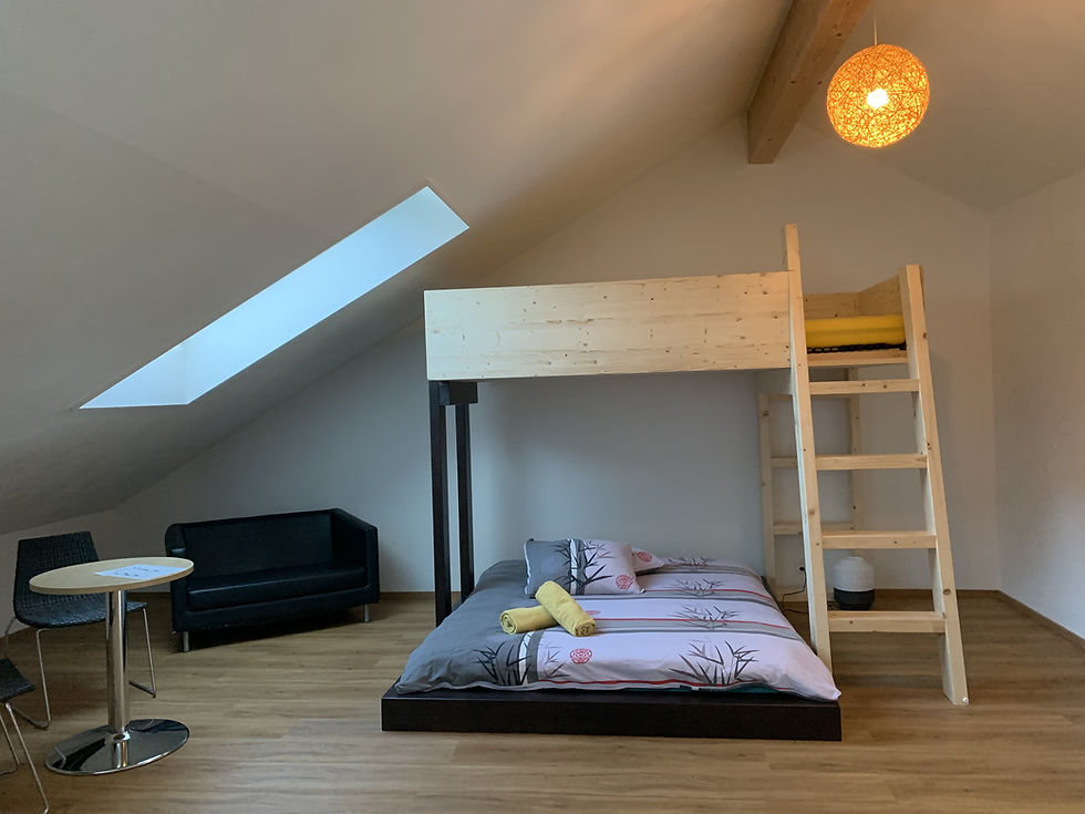Una camera spaziosa pensata per famiglie o gruppi di amici che desiderano soggiornare insieme nel centro di Locarno.